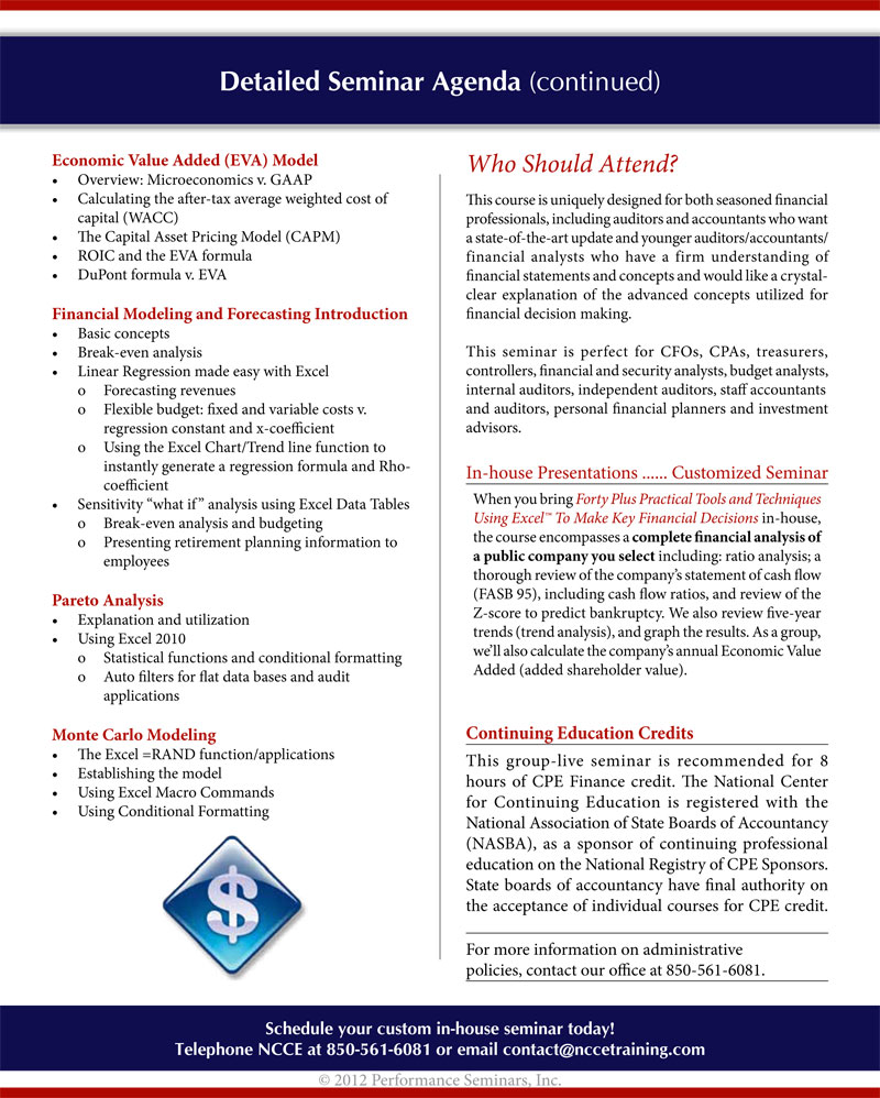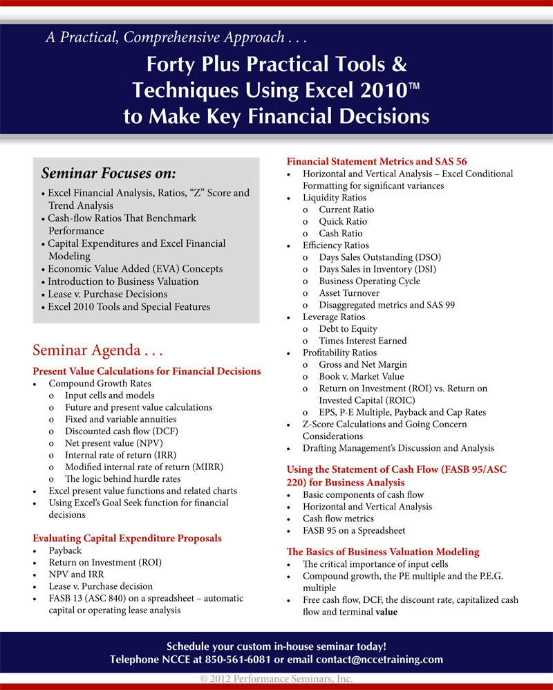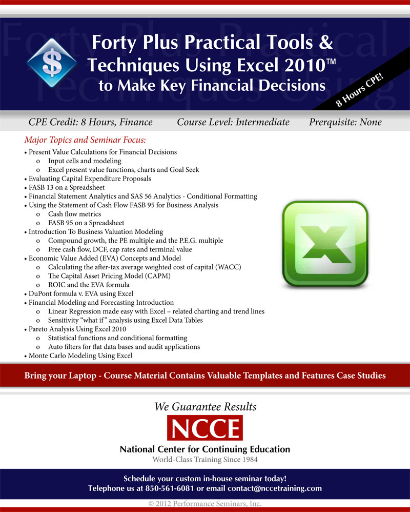 Forty Plus Practical Tools & Techniques Using Excel 2010 to Make Key Financial Decisions